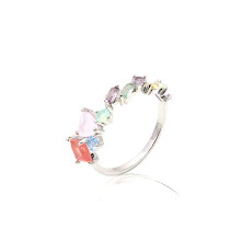 Joia em prata de lei com banho de ródio, e cristais Quartzo rosa, Opala e Ametista