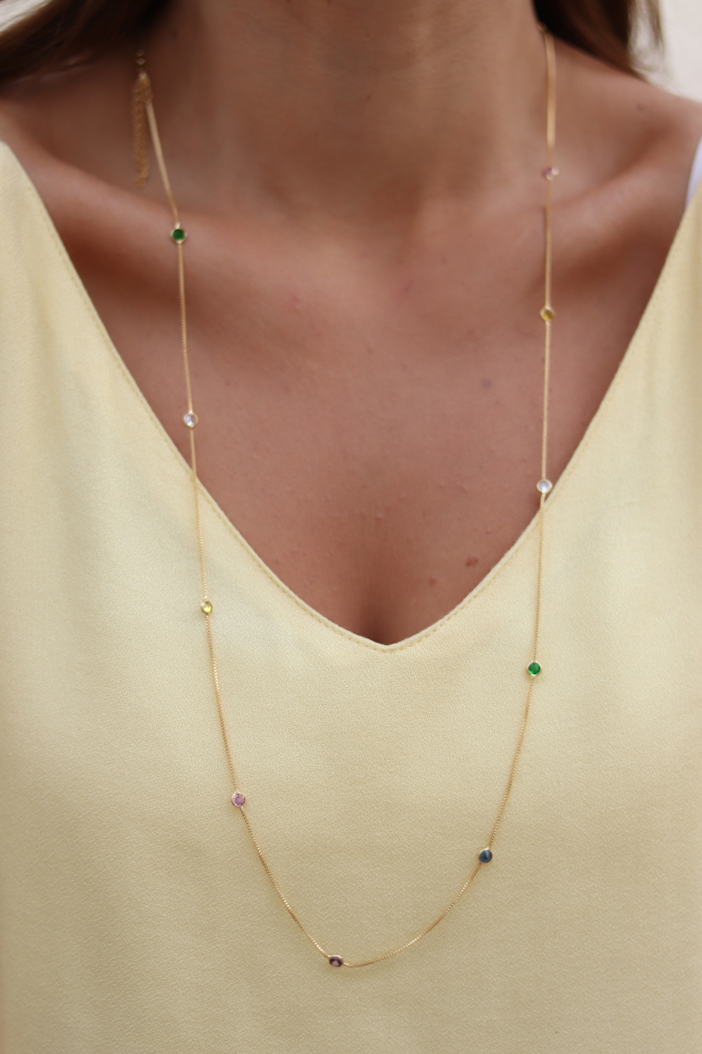 Colar longo com ircônias coloridas rainbow.